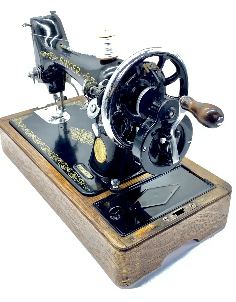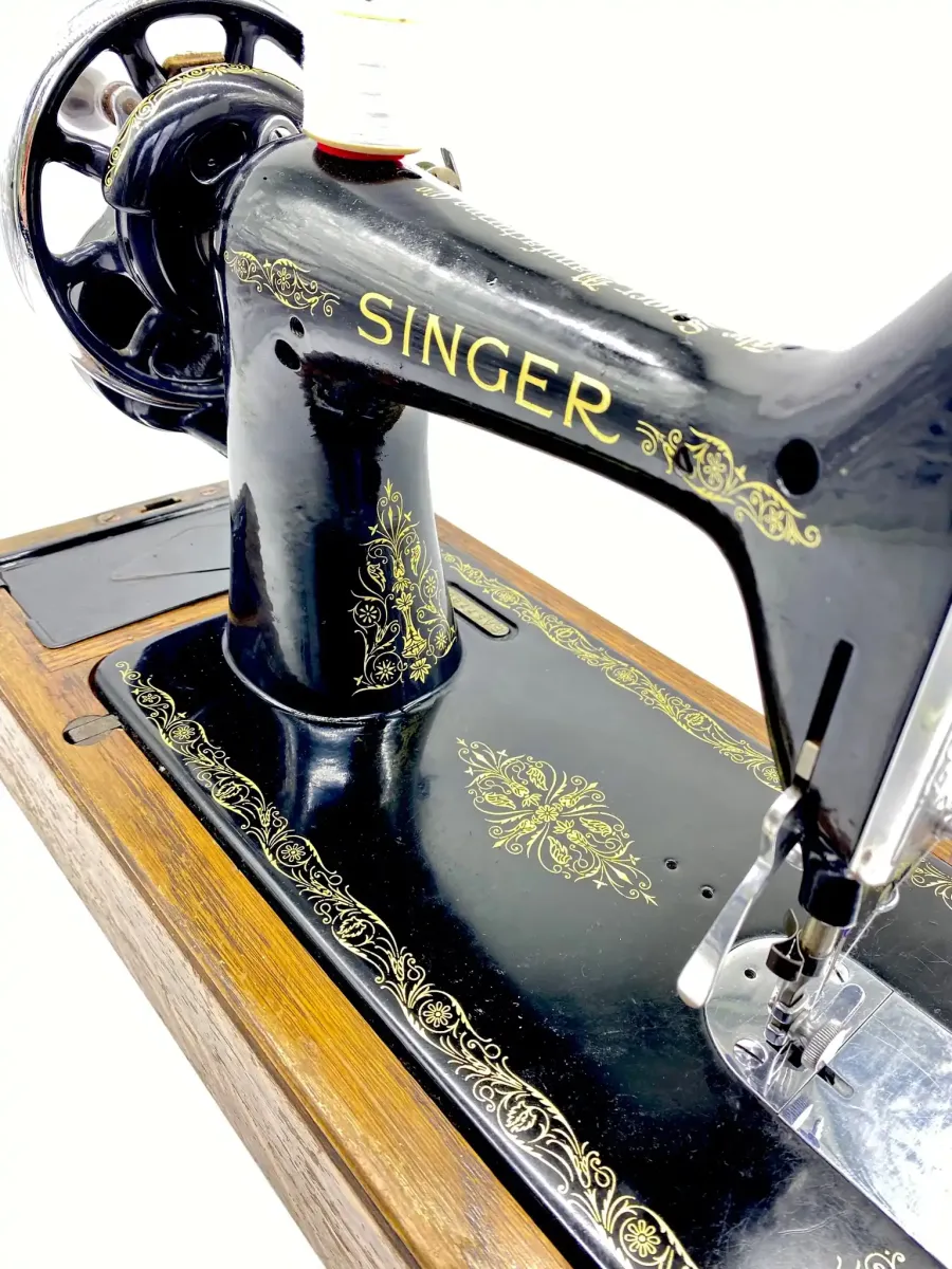 The Singer 99k is widely regarded as one of Singer’s most practical and reliable vintage machines — compact in size yet capable of tackling a wide range of sewing tasks. This example turns smoothly and displays the charm and quality you would expect from a well-preserved vintage Singer.